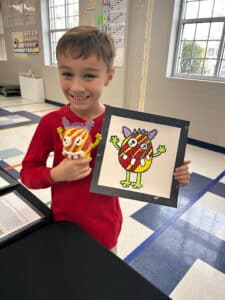 The project first took shape in Ms. Noble’s third-grade art class, where students were challenged to design and paint an original monster. Each student developed a creature based on their own artistic style and preferences, choosing unique colors, features, and expressions.