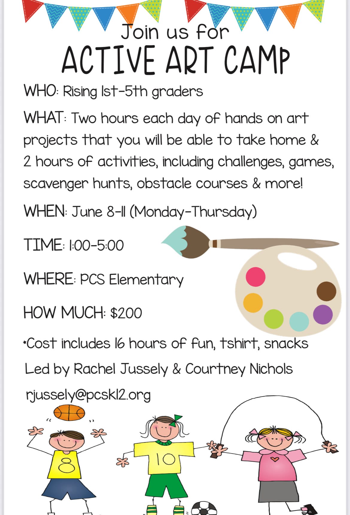 What: Active Art Camp – Rising 1st through 5th graders